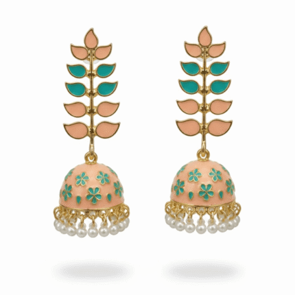 Soft colours, playful charm. The Peach Meadow Jhumka is designed to bring a light, cheerful vibe to your ethnic looks