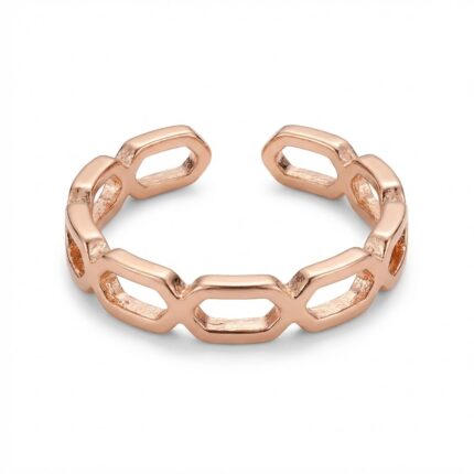 Finished in a polished rose-gold tone, the sculpted links create a balanced look that feels contemporary and versatile. The open adjustable band ensures a comfortable fit, making it suitable for long wear while maintaining a clean, statement-worthy finish.