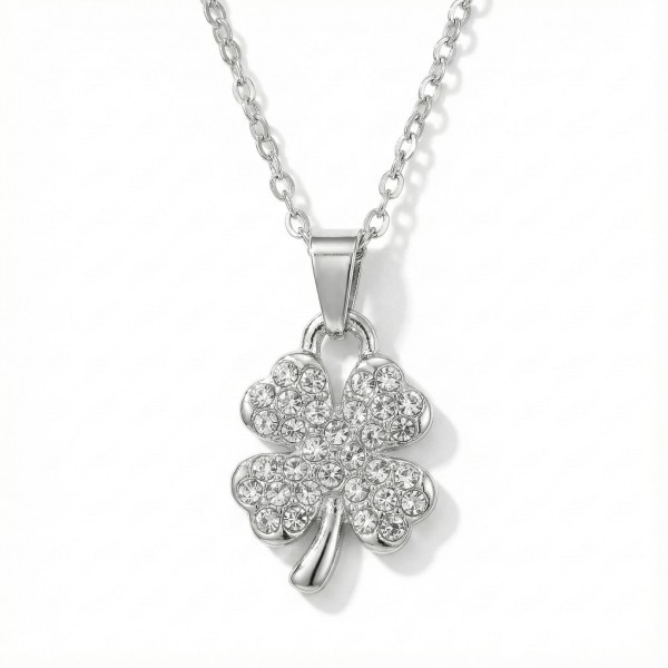 - Clover-shaped pendant with crystal detailing